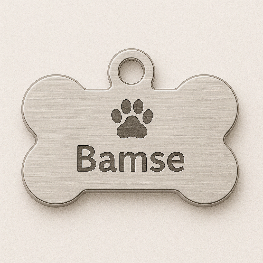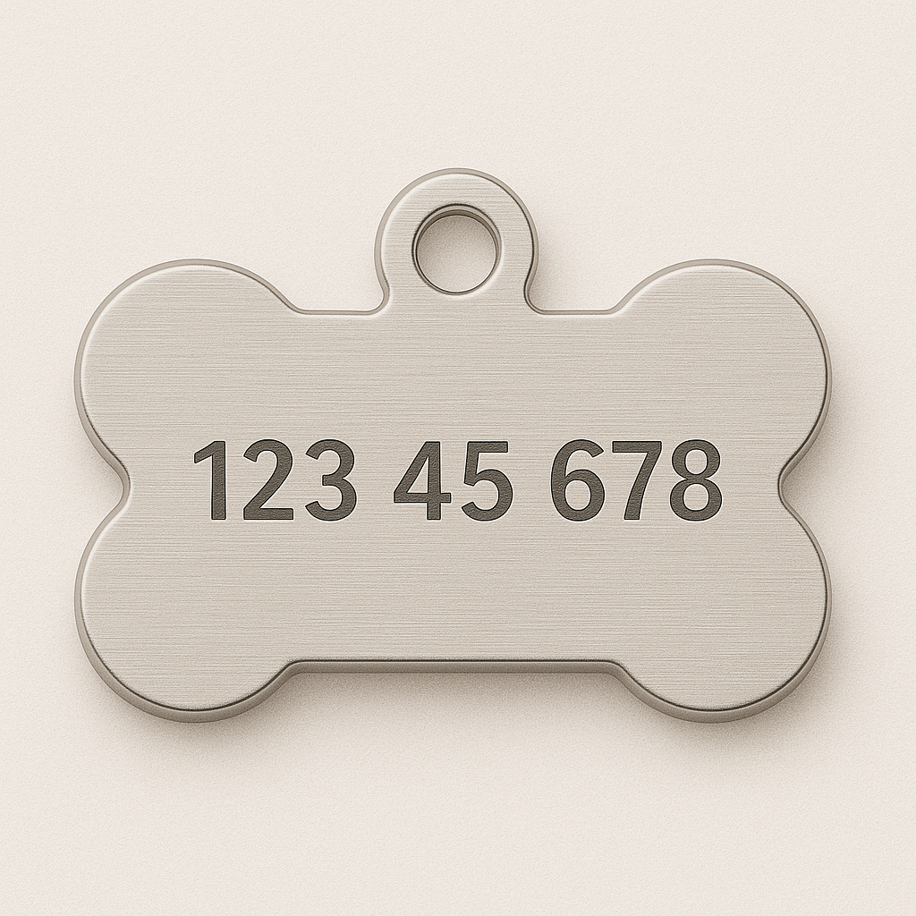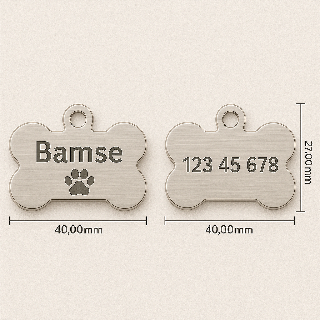 Navnebrikke med egen navn og telefonnummer