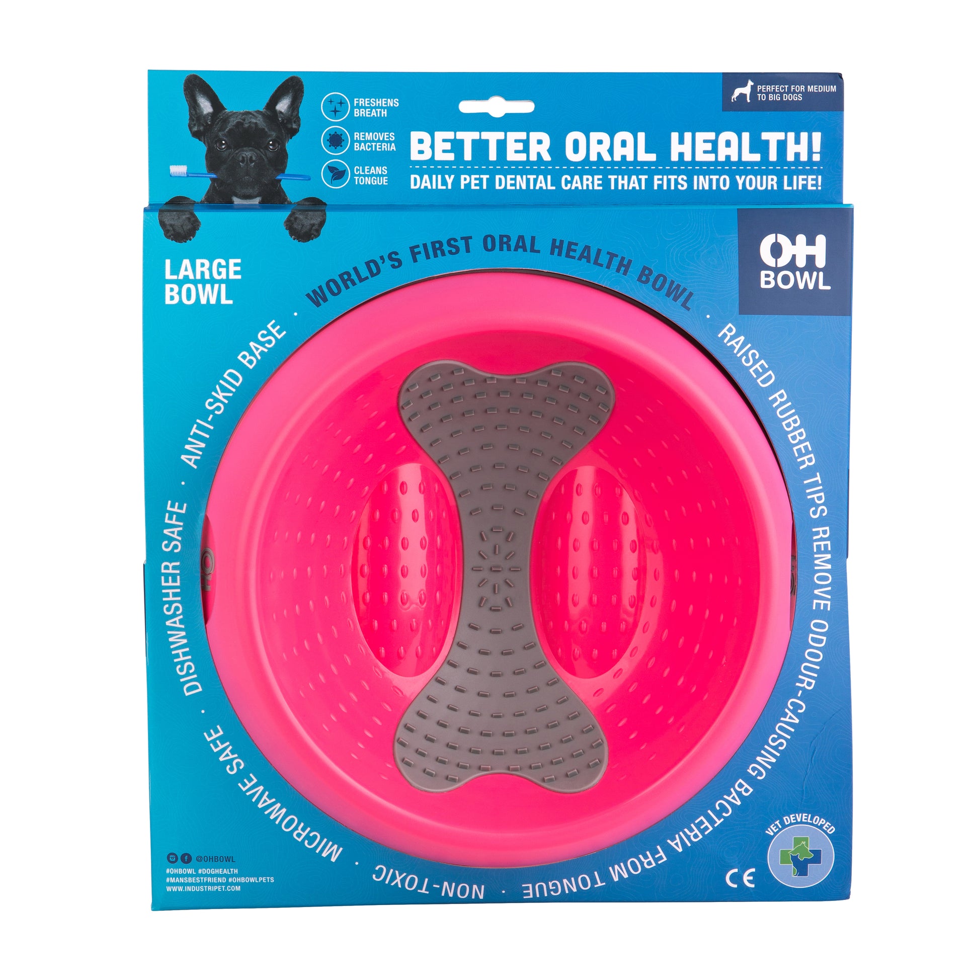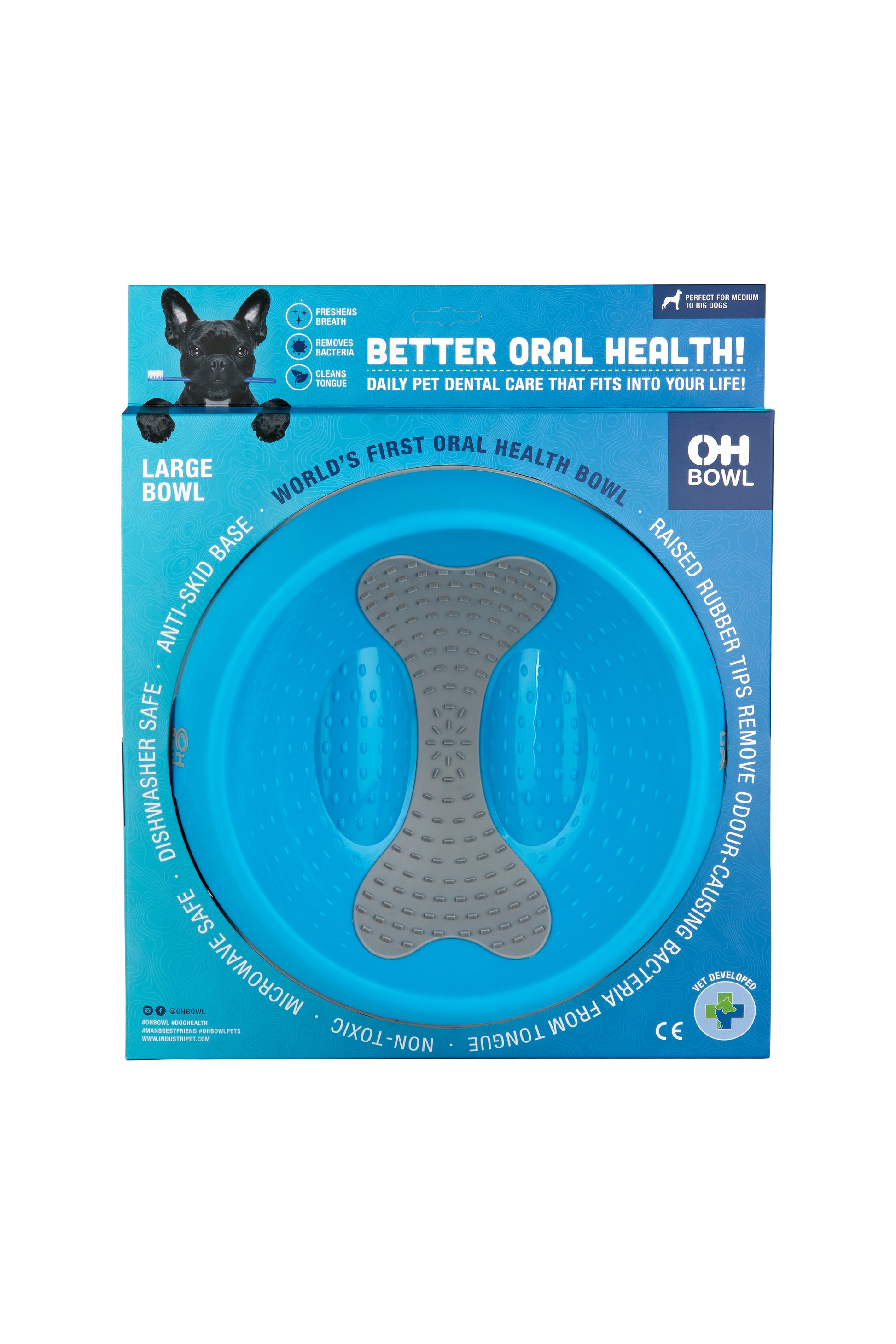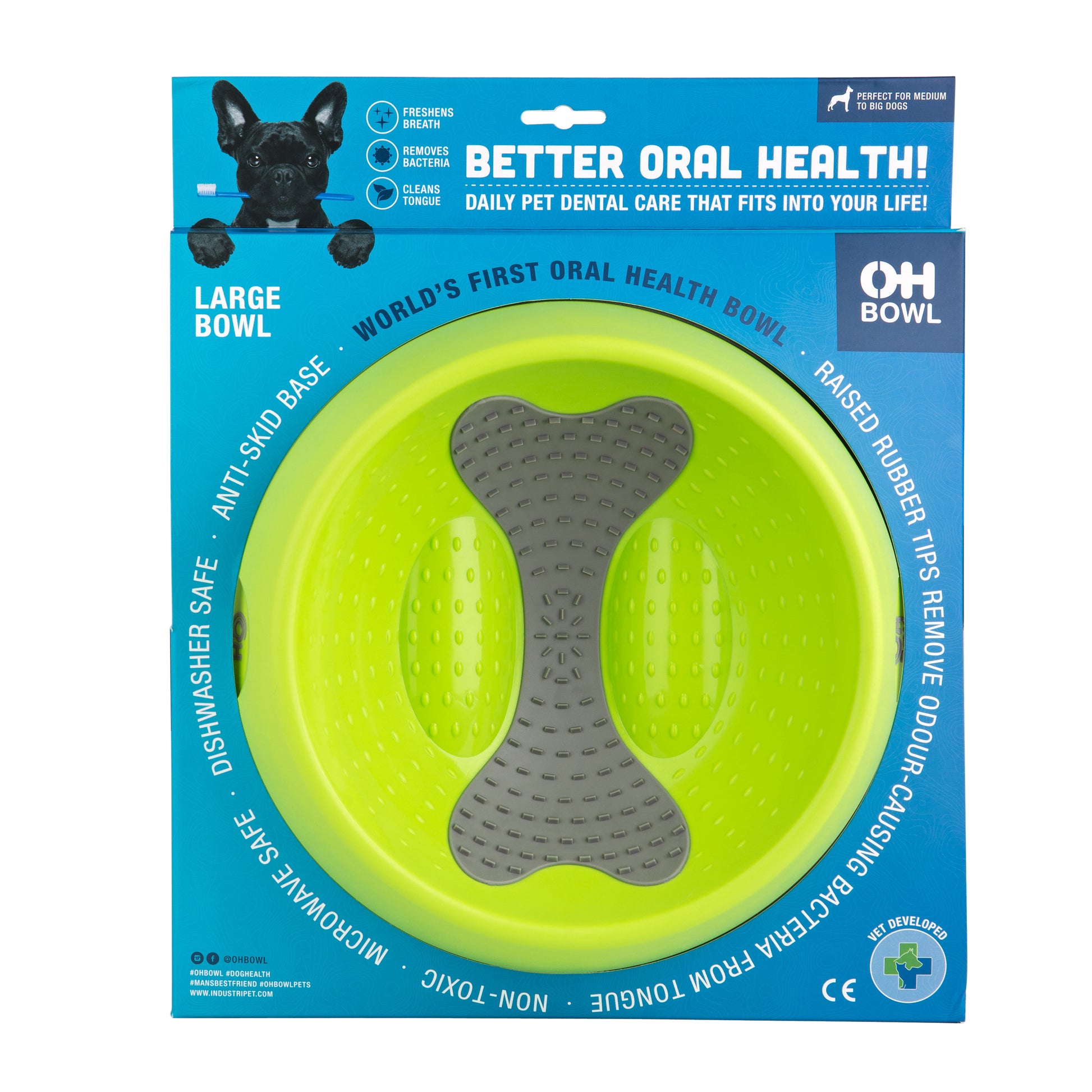 LickiMat OH Bowl er en unik fÎrskÄl med myke gummitupper som stimulerer slikkeatferd, gir bedre munnhygiene og roer ned hunden etter mÄltid. Perfekt for bÄde tÞrrfÎr, rÄfÎr, vÄtfÎr og godbiter.