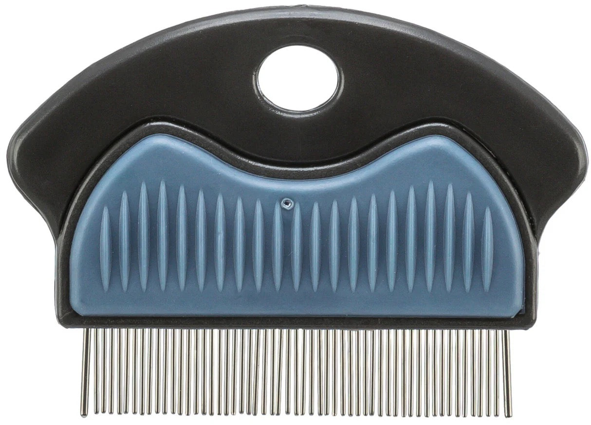 Trixie loppe- og lusekam er et presist verktøy for å oppdage flått, lopper og lus hos hunder, katter og smådyr. De tette metalltennene gjør det enkelt å fange opp små parasitter eller egg nær huden, og gir rask innsikt i dyrets hud- og pelshelse.